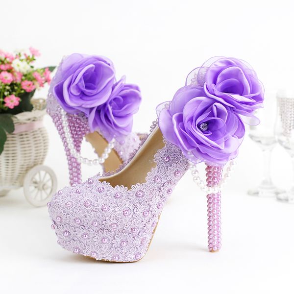 2019 Romantic Lavender Super High Heel Wedding Shoes Beautiful Lace Handmade Bridal Dress Shoes With Appliques Bridesmaid Shoes Bridal Gold Shoes